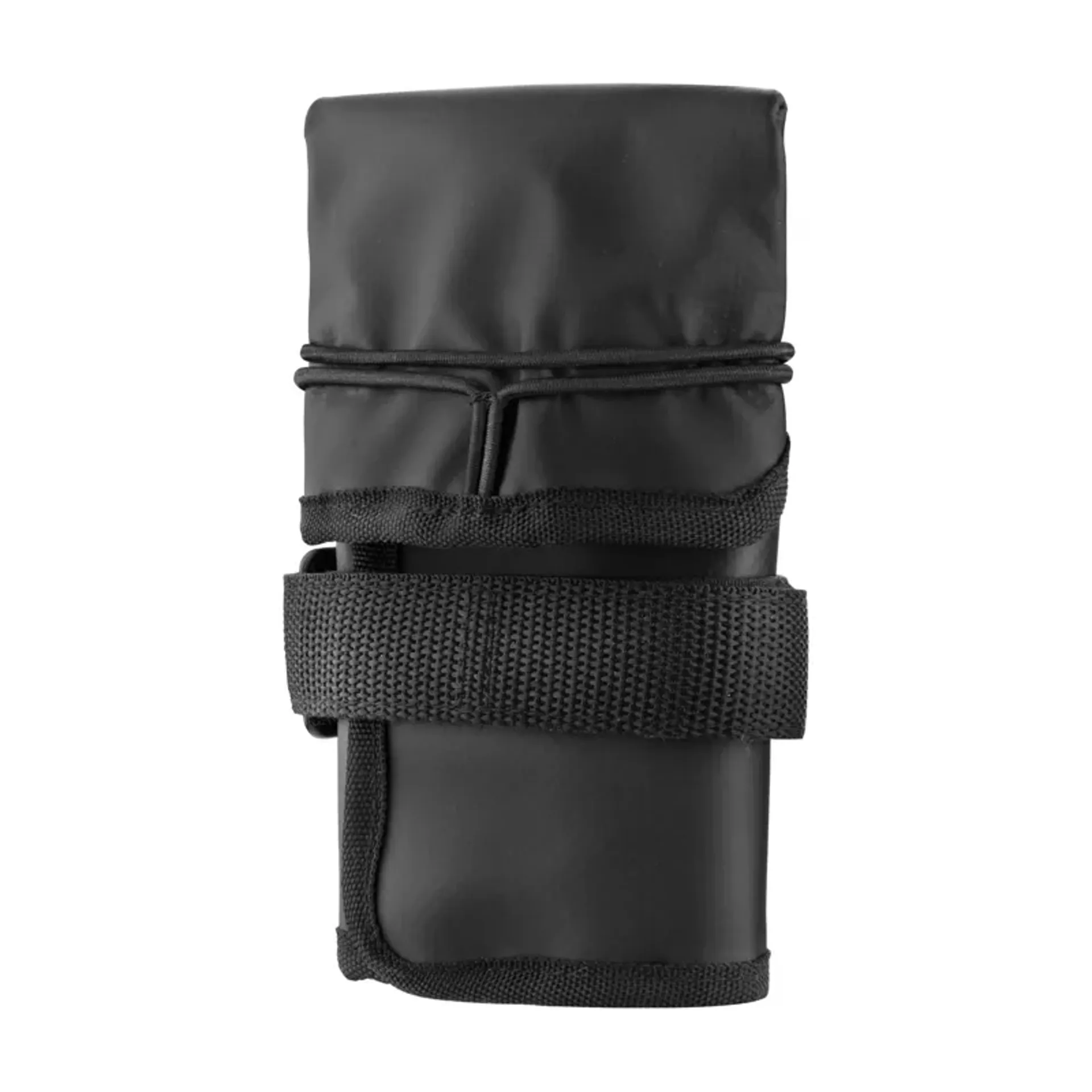 Roll-up storage bag that fits under the saddle rail or in jersey pockets.