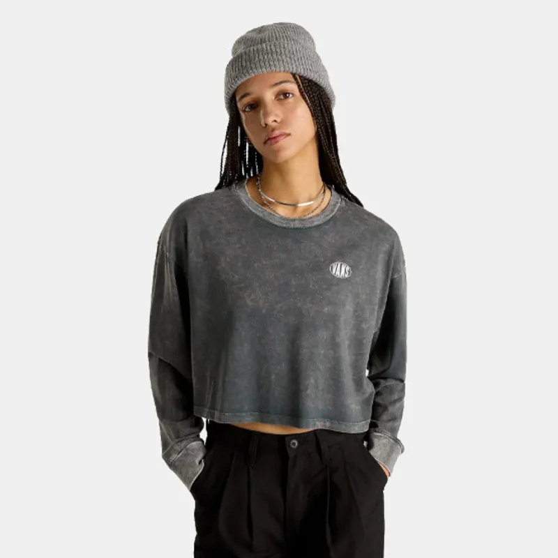 Vans Womens Oval Wash LS Relax Top Black Casual Long Sleeve Tee